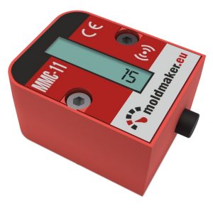 Opatentowane i innowacyjne rozwiązanie technologiczne. Licznik posiada obudowę wykonaną z tworzywa PA6GF15, 8 cyfrowy wyświetlacz zabezpieczony szybką frontową z PMMA, przycisk cykli i przycisk demontażu. Gabaryt licznika i rozstaw śrub mocujących jest zgodny z gabarytami standardowych liczników do form. Można go stosować zamiennie z licznikami mechanicznymi. Ciekawostką jest przycisk demontażu, który stanowi zabezpieczenie przed nieuprawnionym odkręceniem licznika od podłoża. W takiej sytuacji generowane jest powiadomienie o demontażu. Licznik posiada wbudowany nadajnik emitujący bieżącą wartość licznika oraz inne sygnały kontrolne, które mogą być odbierane na dwa sposoby: za pomocą telefonu z systemem Android i zainstalowanej aplikacji MoldMarker Scan oraz za pomocą Koncentratora MMCD. Licznik wyposażony jest ponadto w zbliżeniowy układ nadawczo-odbiorczy NFC, który umożliwia komunikację dwukierunkową z wykorzystaniem telefonu z aplikacją MoldMaker Scan. Fizyczne działanie nadajnika polega na okresowym wysyłaniu bardzo krótkich impulsów cyfrowych. Sygnał radiowy korzystnie odbija się od różnych metalowych powierzchni, rozchodząc się we wszystkich kierunkach.